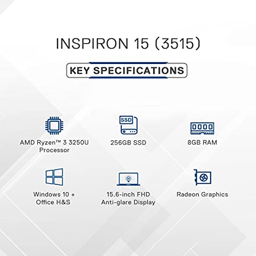 Dell 15 (2021) Ryzen 3-3250U Laptop, 8GB DDR4, 256GB SSD, Win 10 + MS Office, Radeon Graphics, 15.6" (39.62 cms) FHD Display, Carbon Color (Inspiron 3515, D560523WIN9BE)